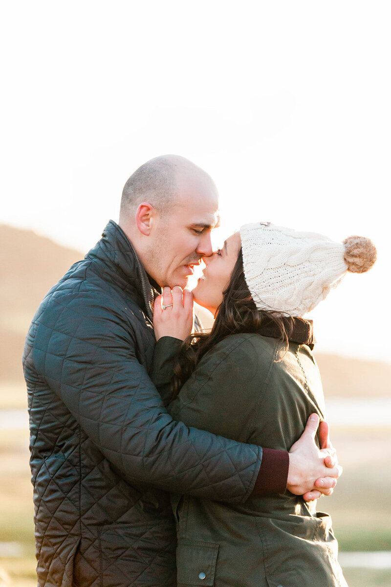If you’re planning to take your engagement photos during the winter, keep in mind that if your session takes place in the evening, we could begin shooting as early as 2:30 pm to catch the sunset. I recommend dressing in layers so that in between photos you can warm up. Make sure you bring a little extra makeup and tissues in case your nose begins running or your eyes water.